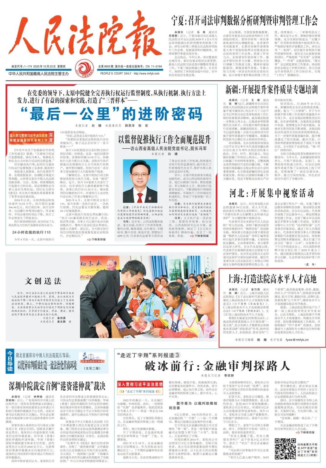 据悉,上海法院近期评选产生了新一届上海法院审判业务专家42名。以此为契机,上海法院着手开展高水平人才高地建设,构建全市齐抓共管、院校集智赋能的工作格局,并按照做好“四个表率”的要求,加快建成与上海国际化大都市定位相匹配的高素质法院人才队伍。