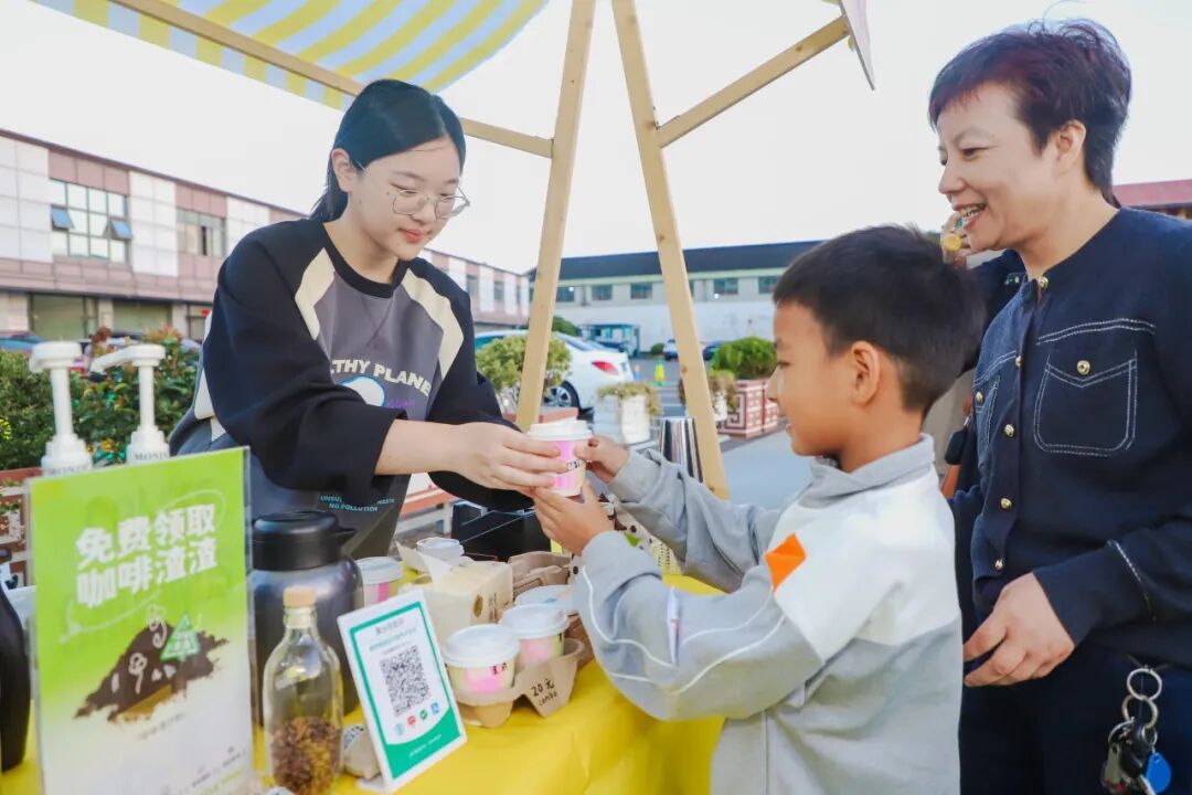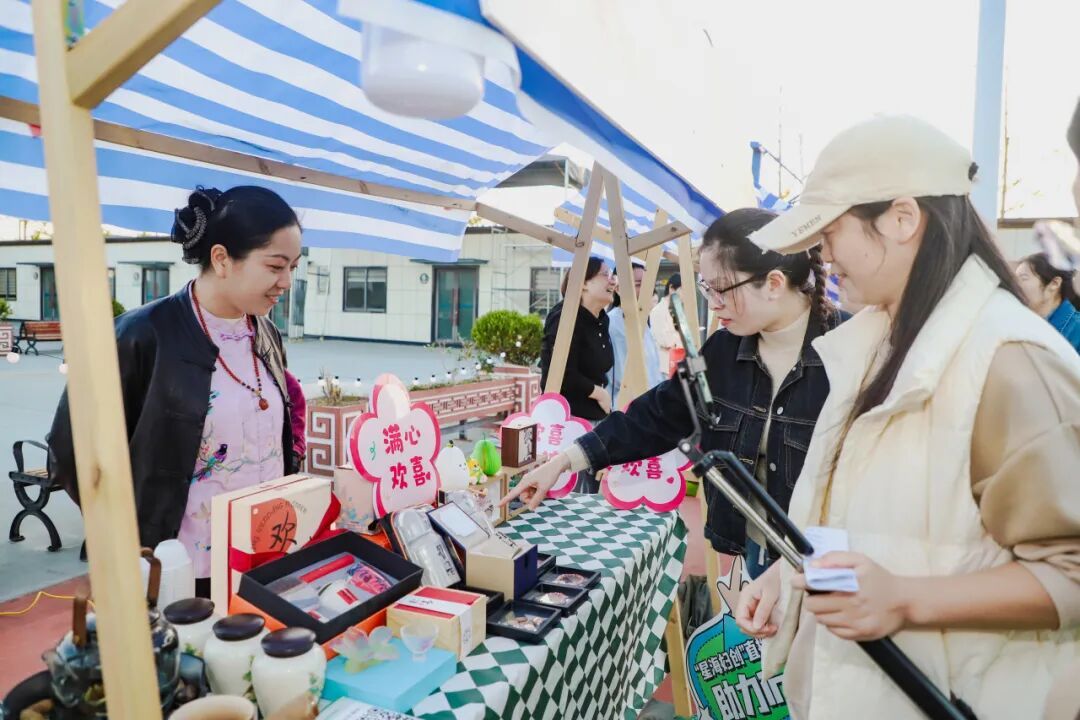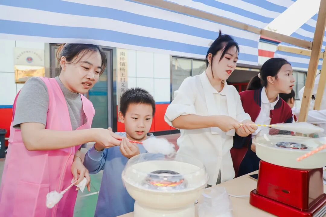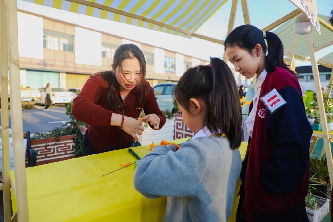 另一侧的丰收集市热闹非凡,“妈妈,那儿能自己DIY棉花糖!我也要试试!”小男孩拽着妈妈的手冲向手工互动区,一旁的手工扭扭棒课堂也热闹开讲。“小朋友们,来考考大家的禁毒小知识呀!”“阿姨,这是未成年人保护法科普手册,拿回去慢慢学。”集市里的志愿科普摊位前人头攒动,孩子们边互动边学知识,在欢声笑语里收获不一样的乐趣。