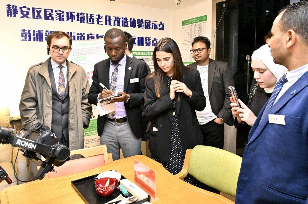 汉学家们还来到街道第一综合为老服务中心,实地探访基层为老服务的“一站式”保障模式,了解智慧养老服务平台的功能。大家还走进静安区首个居家环境适老化改造体验展示点,实地体验各种适老化改造设施和适老化场景,“这种‘智慧+养老’的模式为老龄化社会治理提供了很好的参考。”