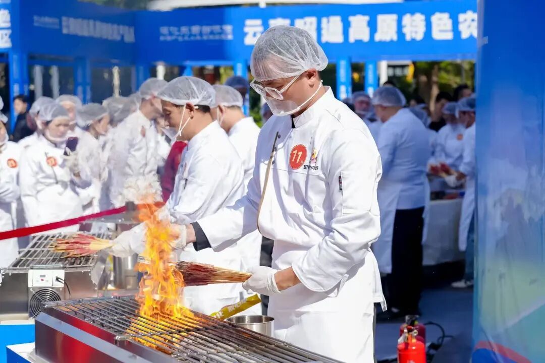 本次竞赛以“匠心创造・技能兴业”为主题,以《昭通小肉串制作和服务规范》团体标准为依据,要求选手在10分钟内完成60串净肉的烤制任务。评分环节将从色泽、火候、时间把控、卫生规范等维度进行综合考量,最终由专家评委团评选出奖项。