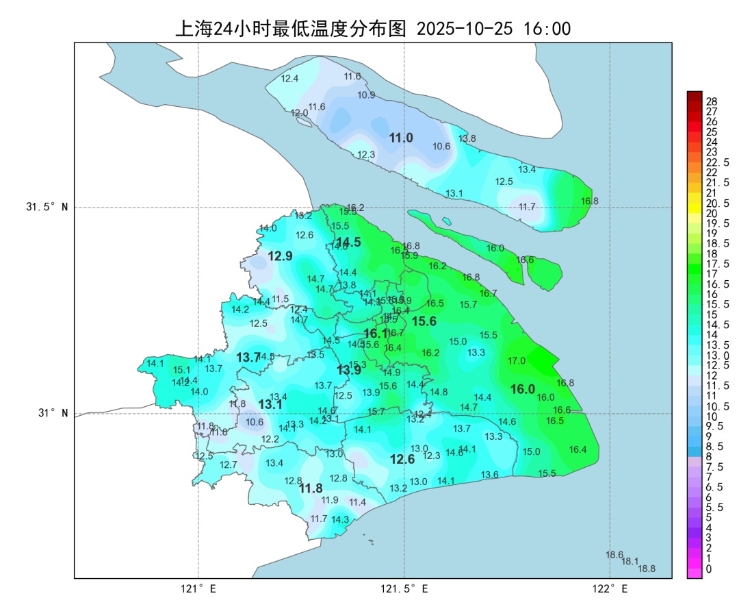 上海今天延续多云的好天气,风力仍较大。早间凉意明显,郊区中最低气温最低的是崇明,仅11.0℃,市区徐家汇站是16.1℃。白天阳光上线之后,气温快速回升,全市最高气温普遍在21~23℃之间。午后暖阳里体感还是比较舒适。
