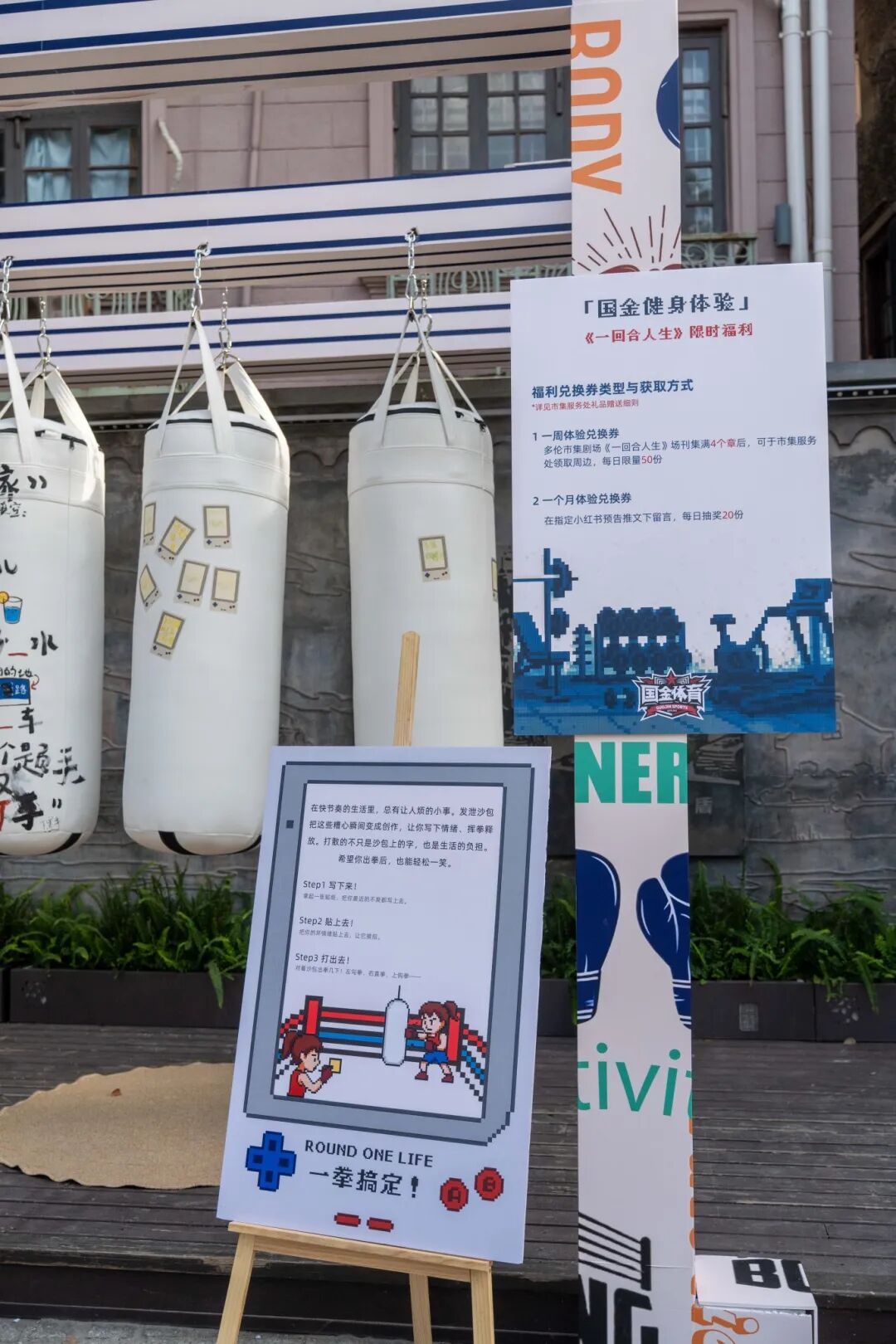 而这种通过空间传递情绪、用场景引发共鸣的设计,在市集互动环节中得到了更具体的延伸。市集现场延续了“多伦市集剧场”一贯的沉浸式体验传统,以细节丰富的互动设计增强观众参与度。观众可以写下生活中的烦恼、在拳击沙包上释放情绪,或参与轻松的互动挑战,寻找属于自己的 “平衡时刻”。这些设计被自然融入剧场叙事之中,不是单纯的游戏,而是一种带有心理共鸣的体验,让每一位参与者都能在轻松的互动中感受到“出拳”的力量与“重生”的勇气。