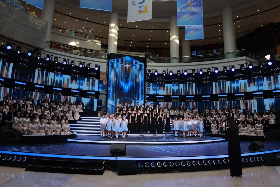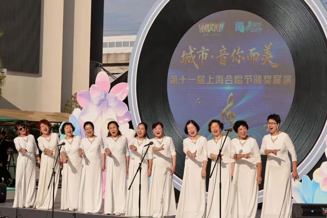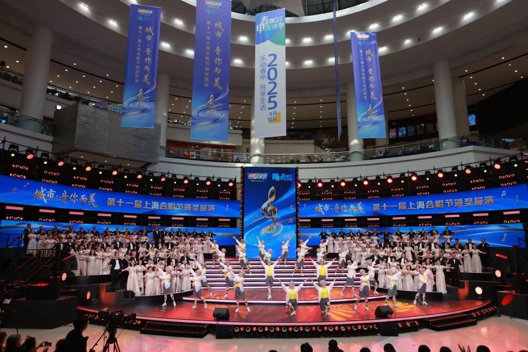 今天(10月25日)下午,第十一届上海合唱节颁奖展演精彩上演。本次展演首次创新采用“1+3+5”多会场联动模式,把动人歌声唱进闵行商圈。