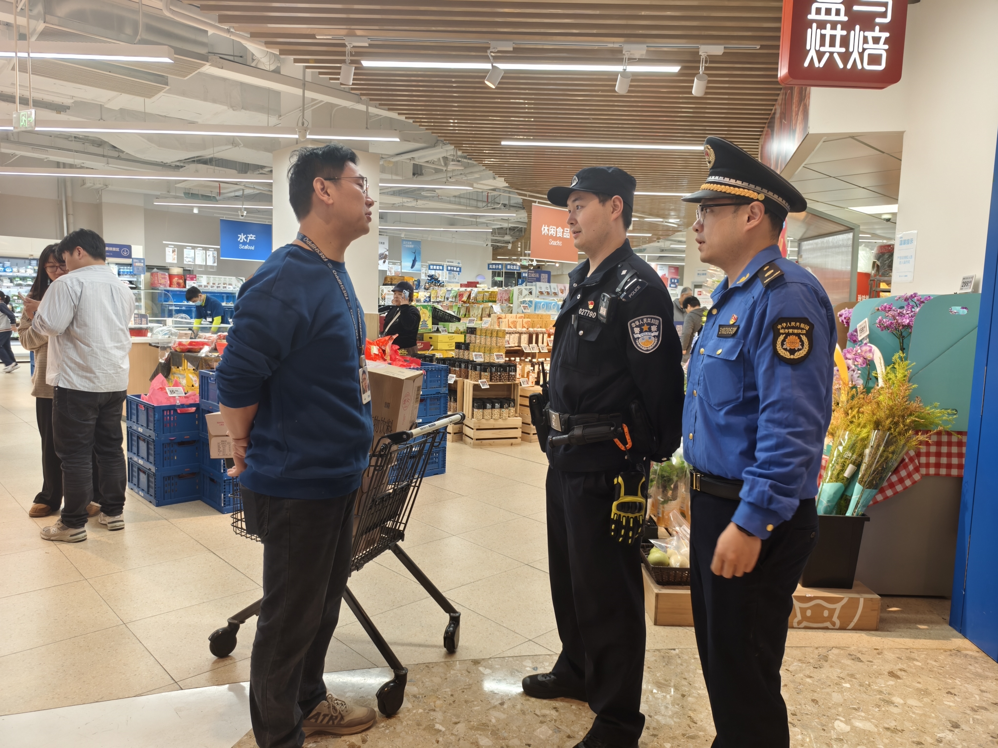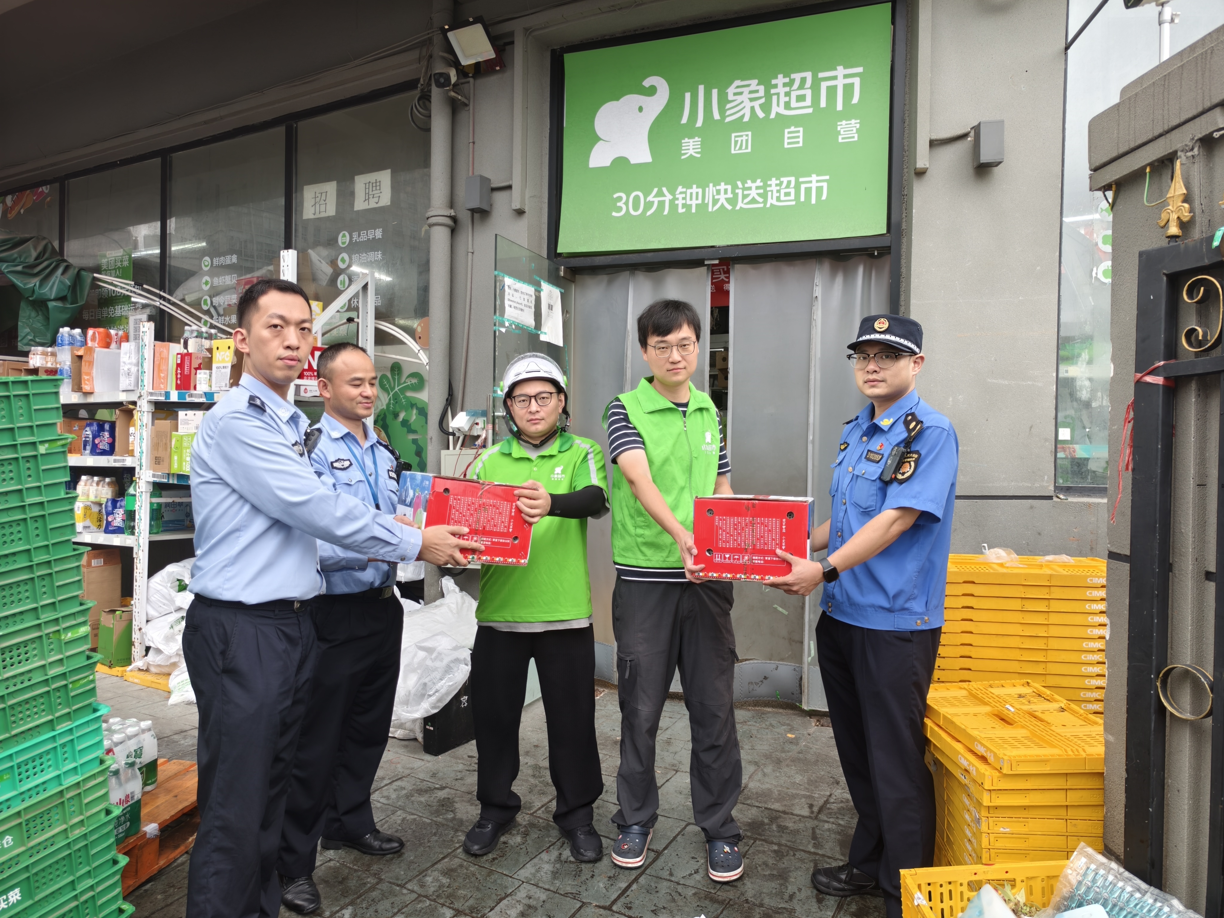 当联盟成员——天目西路街道综合行政执法队、天目西路派出所的同志们走进各个骑手站点时,熟悉的身影让小哥们瞬间绽开笑容,纷纷热情地走上前打招呼。“这既是慰问,更是一次心与心的交流!”派出所周晟队长的话语满含温度,他指着爱心企业送来的苹果与饮料,笑着解释这份心意的深意:“苹果寓意‘平安相伴’,饮料捎去‘快乐工作’的祝愿,就是希望大家在天目西跑单的每一天,都能踏实、暖心!”