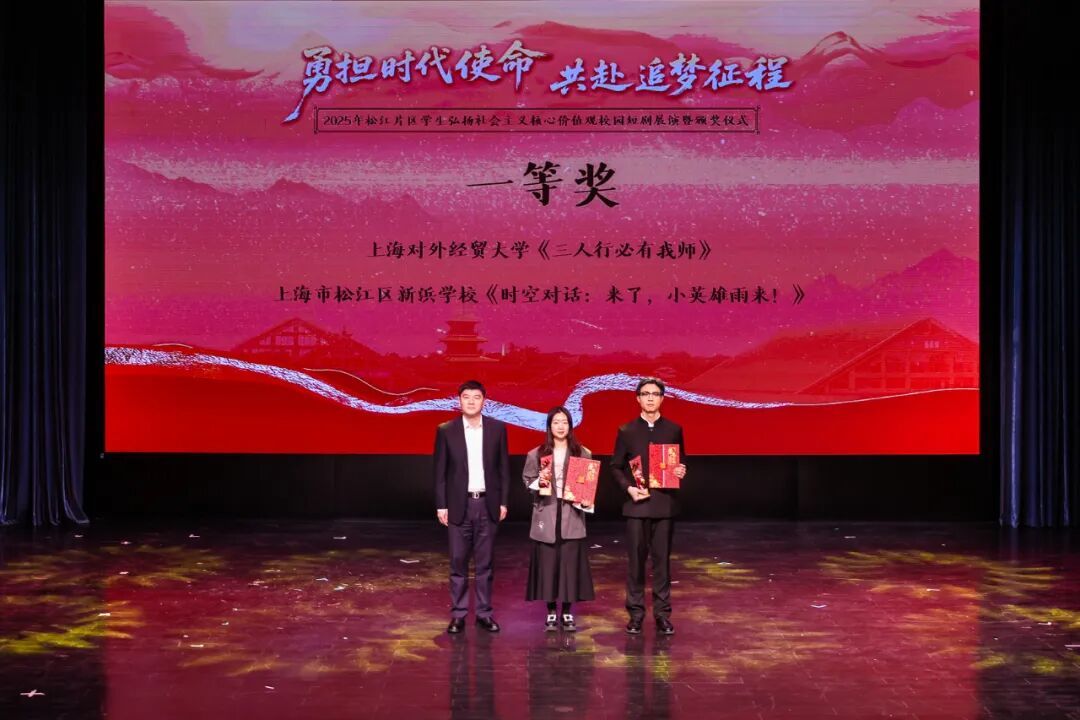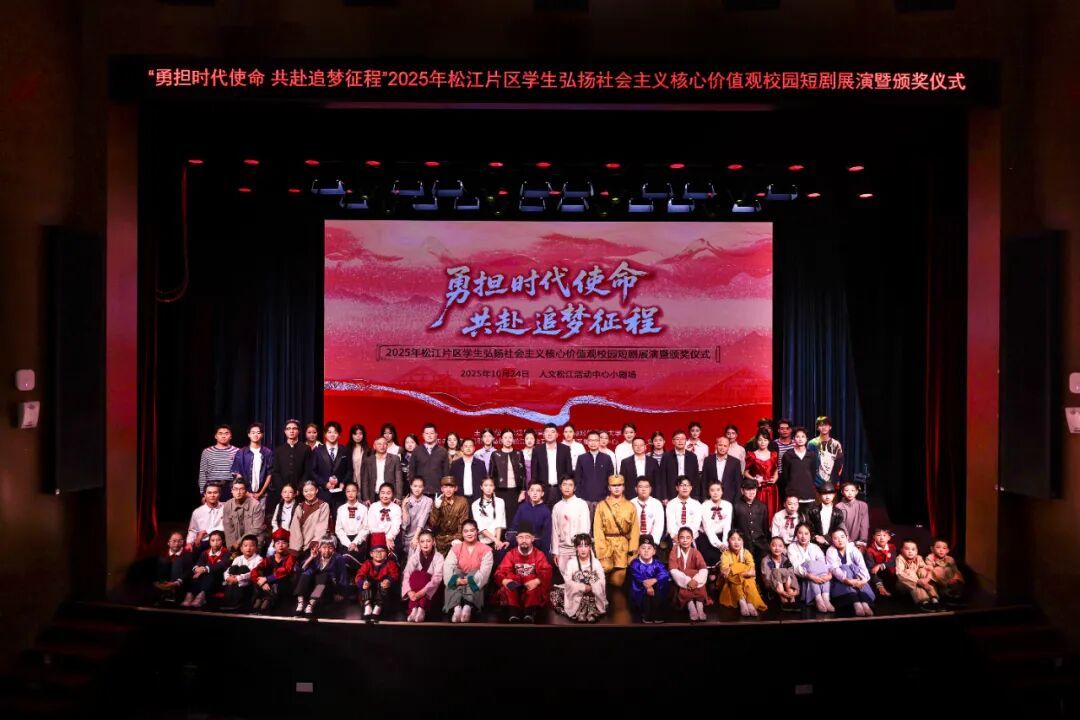 松江片区学生弘扬社会主义核心价值观校园短剧比赛由上海对外经贸大学和松江区委宣传部联合主办,八年来吸引了50多所大中小学参与其中,千余名学生参加演出,100余部校园短剧成功展演,逾十万名观众线上线下观演,并于今年荣获教育部“大中小思政教育一体化典型案例”,为区域内大中小学思政教育一体化建设和文化建设提供了有力支撑。