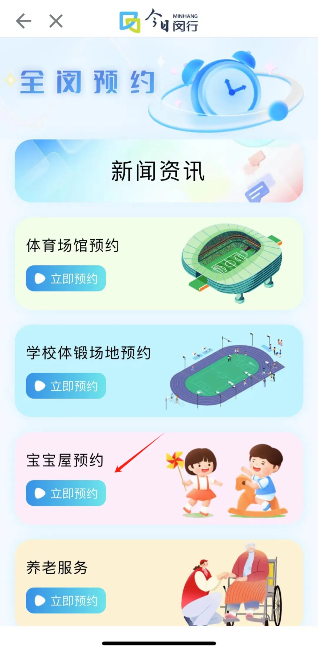 2.进入【全闵预约】中的【宝宝屋预约】;