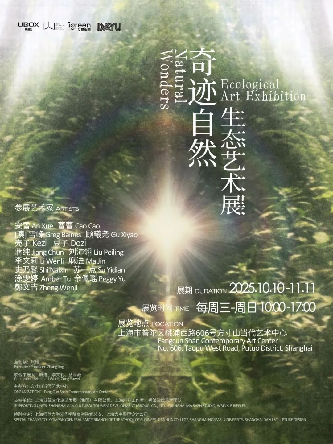 近日,“奇迹自然”生态艺术展在普陀桃蔓里内的方寸山当代艺术中心开幕。本次展览分为四大主题展区,集结了麻进、曹曹、刘沛翎、李文莉等15位艺术家的艺术作品,从远古生命到城市再生,从织物触感到田野回归,构建出一个多层次、沉浸式的生态艺术现场。 走进中庭主展区,三件“巨物”格外引人注目。当代艺术家麻进、刘沛翎的巨型装置《解构当代重塑远古——暴龙》《深海鲸鱼》与蝴蝶系列作品《桃》在此形成时空与体量的强烈对比,仿佛将观众带入一场跨越亿年的生命对话,暗示物种变迁与生态延续的主题。 巨型装置艺术 “织物怪境”展区着重呈现了材料的循环可能,以柔软而怪诞的美学语言,唤醒人们对可持续生活与消费文化的反思。比如,艺术家曹曹以“旧物再生”为创作概念,运用针织面料与城市生活旧物改造,融入天马行空的宇宙畅想,创作出《ET家族》等一系列艺术装置。 织物系列作品 值得一提的是,在展览筹备阶段,社区还发起旧物征集活动,邀请附近居民共同参与。艺术家李文莉带领公众共创艺术作品《拼月亮》,将旧衣、废弃布料与日常杂物重新编织为带有情感温度的艺术表达,实现从“被丢弃”到“被珍藏”的转变。 共创艺术作品《拼月亮》 展区“田野叩问”则通过麦田装置、生态诗歌与自然画作,打造出一片城市中的秋日田野,让人们不必远行乡野,在城市中也能感受麦田。观众穿行其中,不仅能感受麦穗的摇曳和土地的芬芳,也能在视觉与文本的交织中,体味艺术对自然与农耕文明的现代艺术化转述。这一部分是对都市生活节奏的一次诗意打断,也是一次心灵的自然回归。“麦田的设置和头顶的阳光相呼应,让我好像真的走入了自然。”艺术生小郑对展区感触很深。 展区“田野叩问” “奇迹自然”生态艺术展不仅是艺术的呈现,更是UBOX桃蔓里创意艺术社区“共创共生”理念的一次实践。在策展团队看来,社区不应仅是商业空间,更应与居民一起成为城市生态文明的建设力量。通过艺术家驻地、社区共创与公共艺术项目,展览正尝试构建一个艺术、生态与人互动的微型城市生态系统,为社会公众提供生态城市的艺术化范本。 本次展览为半公益展览,将持续展出至2025年11月11日,面向公众开放。感兴趣的市民可通过“方寸山当代艺术中心”小程序购票参观。 展期: 10.10-11.11(周三至周日) 观展时间: 每周三-每周日开放 可预约三个时段 预约时段(每时段限50人): 10:00-12:00 13:00-15:00 15:00-17:00 展览地点: 上海市普陀区桃浦西路601号 桃蔓里社区内方寸山当代艺术中心 福利时间!在本文文末留言区留言即可参与抽奖!截止10月27日(周一)15点,小编将在评论区随机抽选2位粉丝,每位送出2张门票哦!快来和我们互动吧!