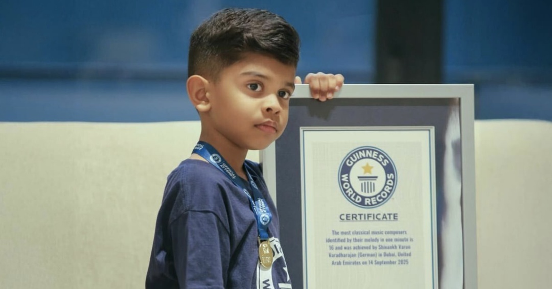 近日,迪拜6岁男孩希万赫(Shivankh Varun Varadharajan )创造了一项新的吉尼斯世界纪录,通过随机播放瓦格纳、莫扎特、瓦格纳、柴科夫斯基、德沃夏克、贝多芬、门德尔松、李斯特、R·施特劳斯、J·施特劳斯、罗西尼、勃拉姆斯、肖邦等16位古典音乐巨匠的作品片段,正确辨认出他们的作品。