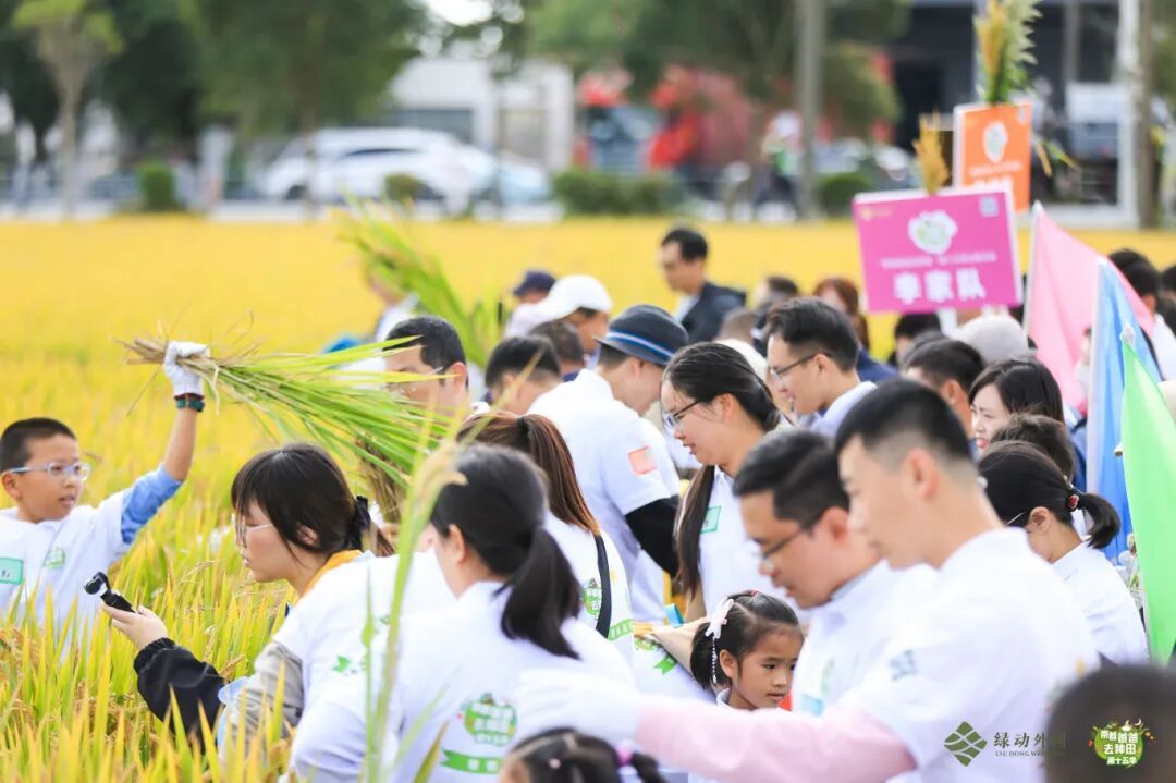 小朋友们戴上手套,拿着镰刀,在爸妈的陪伴下走进稻田,感悟“粒粒皆辛苦”。“弯下腰,俯下身,像这样用力一拉……”“咔嚓”一声,一束稻穗应声而落。8岁的李一言兴奋地跳起来:“我割到了,爸爸你闻,它好香啊。”他把稻穗凑近鼻尖,深深一嗅,脸上绽开灿烂的笑容。