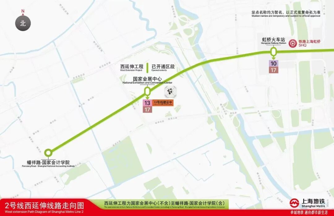 2号线西延伸工程——蟠祥路·国家会计学院站~国家会展中心站(不含)位于上海市青浦区,由既有2号线国家会展中心站向西延伸至蟠祥路·国家会计学院站。该延伸段通过安全评估后,定于11月1日首班车起开通初期运营。至此,上海轨道交通网络将新增一站一区间,总运营里程为898公里,车站518座。