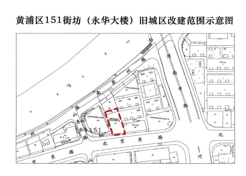 黄浦区151街坊(永华大楼)位于苏州河畔,紧邻外滩历史风貌区,是黄浦区零星旧改项目之一。根据《黄浦区人民政府关于同意确认黄浦区151街坊(永华大楼)旧城区改建项目房屋征收范围的批复》(黄府 [2025]18号)批准,黄浦区151街坊(永华大楼)房屋征收范围为:东至北京东路378号,南至北京东路,西至北京东路398号,北至南苏州路463号,涉及20余证居民。