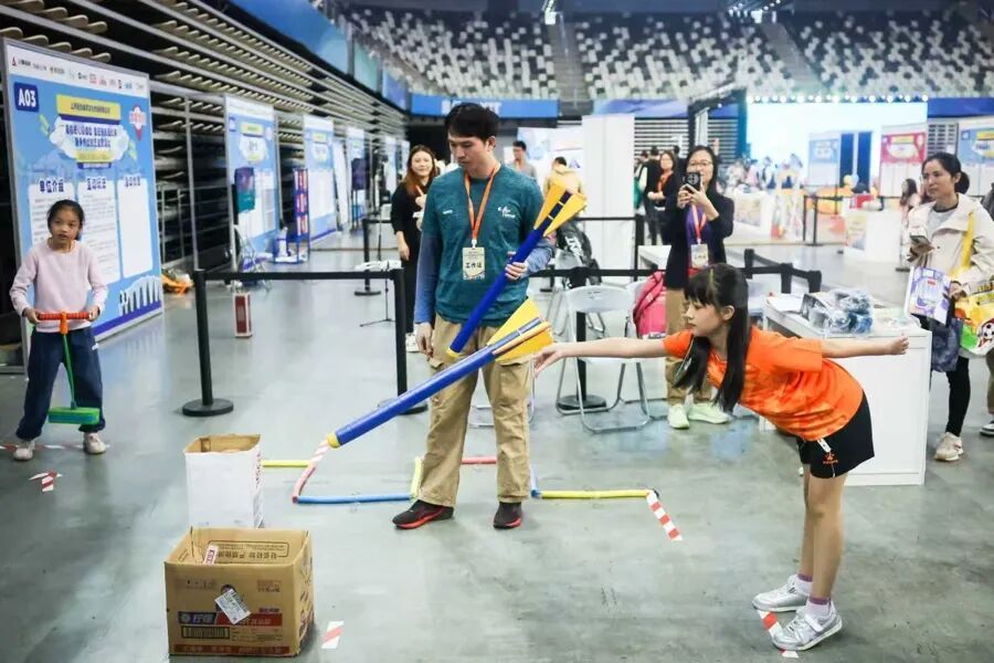 体育旅游展区则直击“周末去哪玩”痛点,直接将运动场景延伸至户外,展出的亲子露营、户外挑战赛等体育旅游线路,给家长们提供了遛娃新灵感。素质教育展区里,孩子们在科创实验、博文美学等展位前驻足,展现出对跨学科知识的浓厚兴趣。