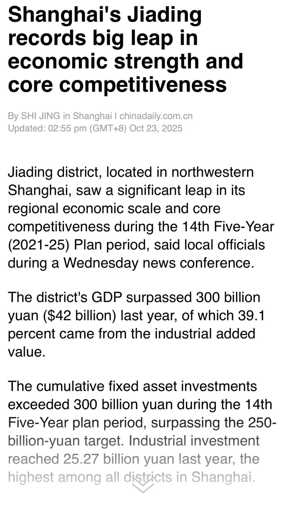 《Shanghai's Jiading records big leap in economic strength and core competitiveness》