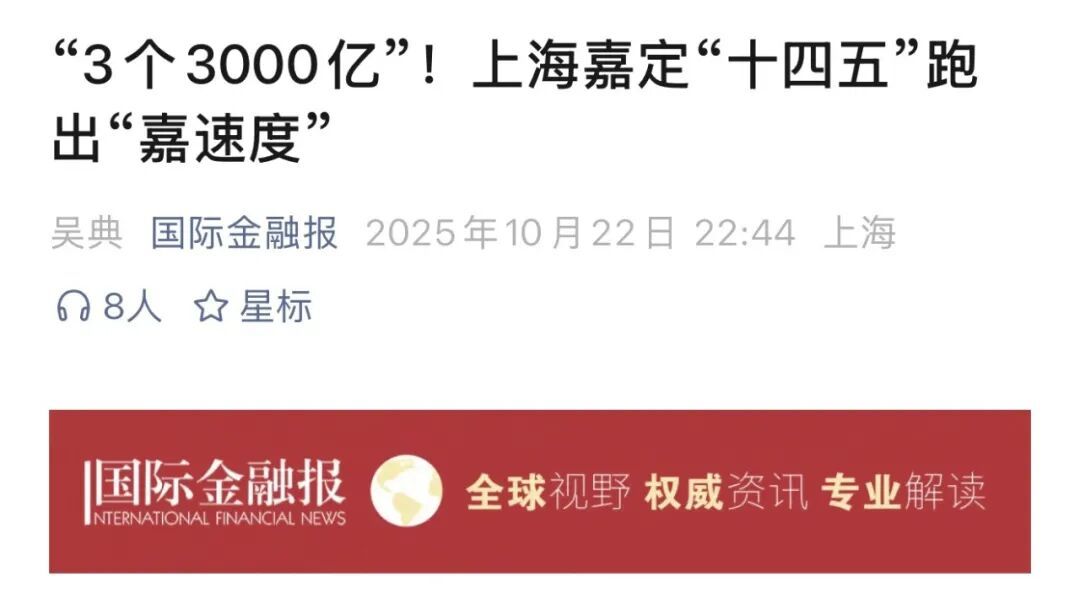 国际金融报:《“3个3000亿”!上海嘉定“十四五”跑出“嘉速度”》