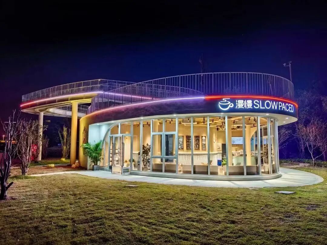 1号湾科创会客厅位于蕰藻浜滨水步道旁,以“莫比乌斯环”为设计灵感,集科创展示、咖啡阅读、便民服务于一体,助力滨水空间向“生活秀带”转型。