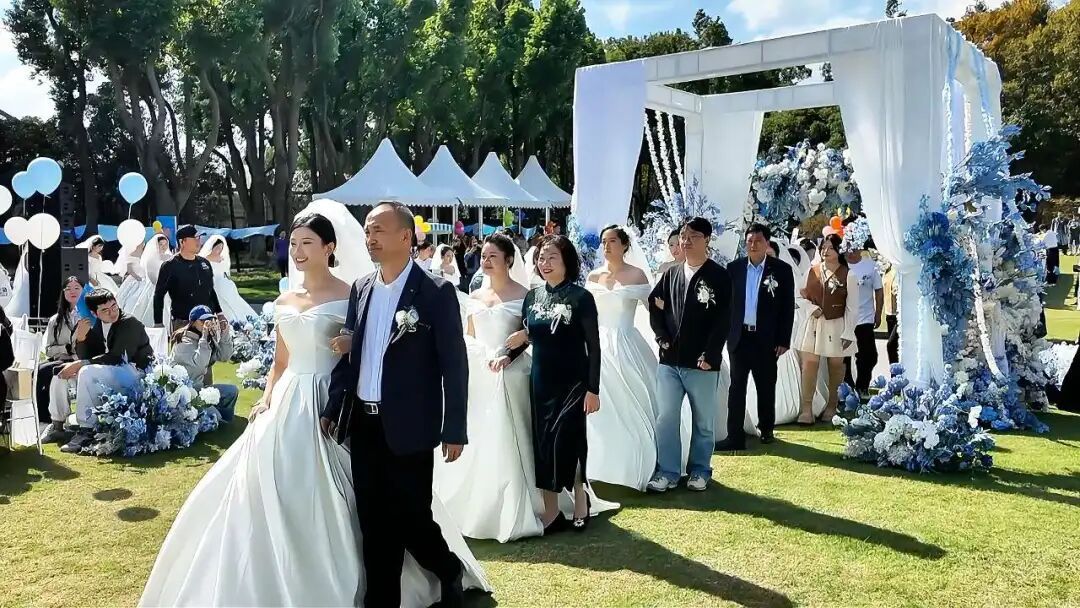 11点08分,婚礼仪式在公园举行,蓝天、绿草、暖阳交织成浪漫的旋律,装点着新人一生中最为神圣的时刻。那句温柔而又坚定的“我愿意”,那枚闪耀着真心的指环,是相守一生的承诺,更是无畏风雨的底气。这一刻起,漫漫余生有灯火可亲,也有星河共赴。