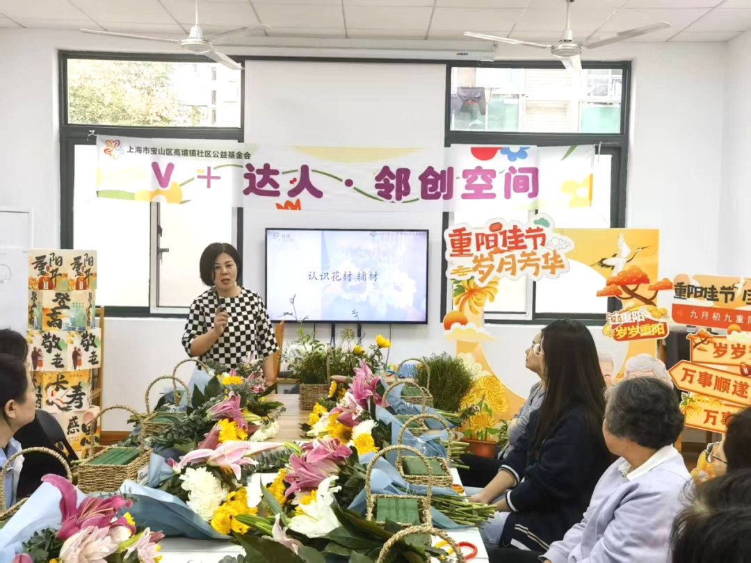 为推进基层治理现代化与构建“15分钟社区生活圈”,宝山区高境镇社区公益基金会发起“V+达人·邻创空间”达人志愿者项目,以“Volunteer+”为核心,推动形成共建共治共享的社区治理新格局。项目通过系统化实施“V+达人计划”,致力于建设一支扎根社区、服务邻里的达人志愿者队伍,构建从“发现挖掘、赋能提升”到“协同共创”的完整社区达人培育体系,打造由志愿者引领、居民共同参与的社区美好生活新生态。 首场活动“花满重阳·情暖邻里”插花志愿活动于重阳节在高境三村温馨上演,通过挖掘社区内部的达人资源,以创新的“故事+技巧+互动”教学模式,激发居民参与热情,不仅传承了传统文化,更为构建一个更有趣、更温暖、人人参与、人人享有的幸福家园奠定了实践基础。
