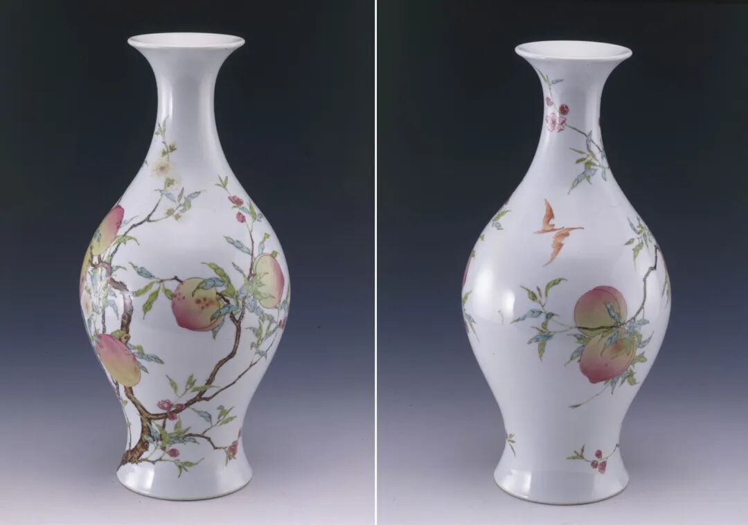 清雍正景德镇窑粉彩蝠桃纹瓶