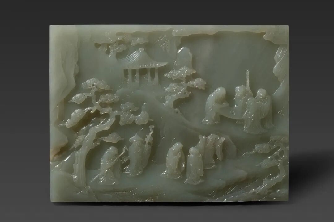 唐代有一位著名诗人晚年退居香山,与八位老者一同宴游,时人称“香山九老”。这位诗人还曾提笔写下《重阳席上赋白菊》,“满园花菊郁金黄,中有孤丛色似霜。还似今朝歌酒席,白头翁入少年场。”你能猜到这位著名诗人是谁吗?这场“香山九老会”后来成为了历代诗画长盛不衰的主题,也开始有了祝寿祈福的含义。尽管这一聚会发生在三月,但如今重阳节已被定为正式的“老年节”,被赋予了“敬老”的含义,值此佳节,我们走进玉器馆,通过三件文物来聊聊这一典故也算应景。