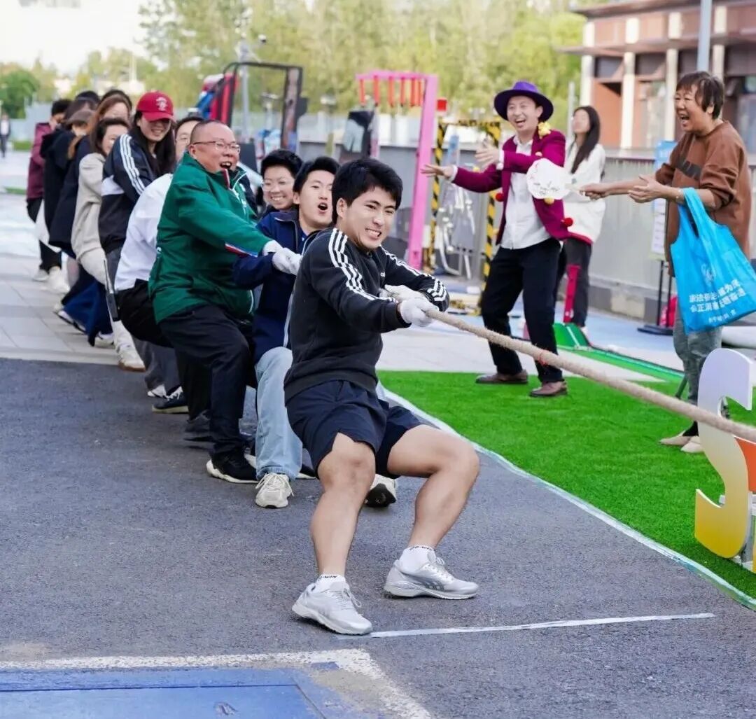 竞争激烈的盲选拔河比赛将活动现场的气氛推向了高潮。参与比赛的队伍均为临时组建,然而,队员们展现出了高度的协作精神与团队凝聚力。他们迅速达成默契,以整齐划一且节奏明快的号声作为行动指令,将力量汇聚在一起,全力以赴投入到比赛当中。