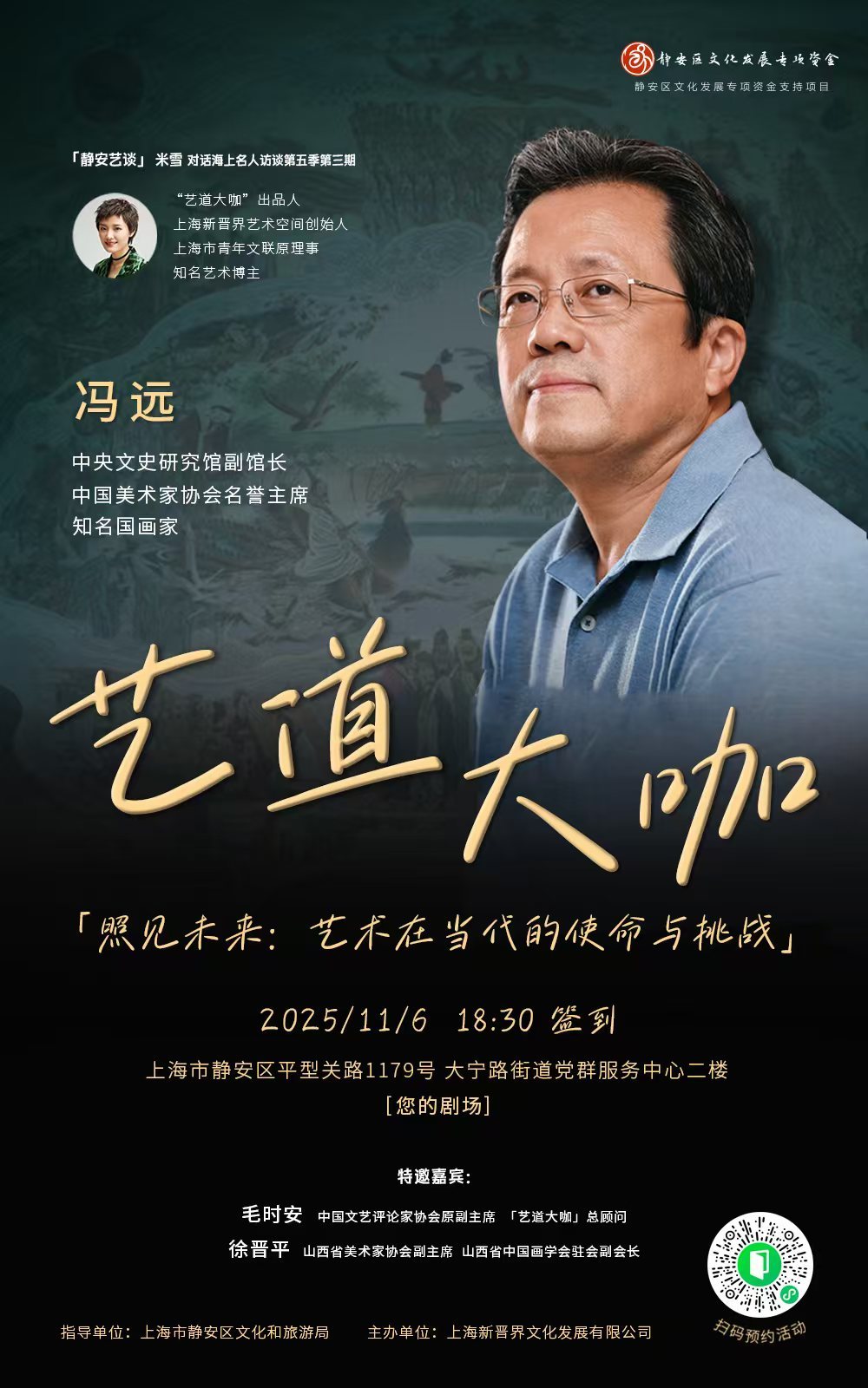 本次活动由静安区文化和旅游局指导,并获得静安区文化发展专项资金支持,“艺术苏河”品牌为合作伙伴。需要提醒的是,本次活动采取预约报名方式,名额有限,先到先得。赶紧扫码预约吧。