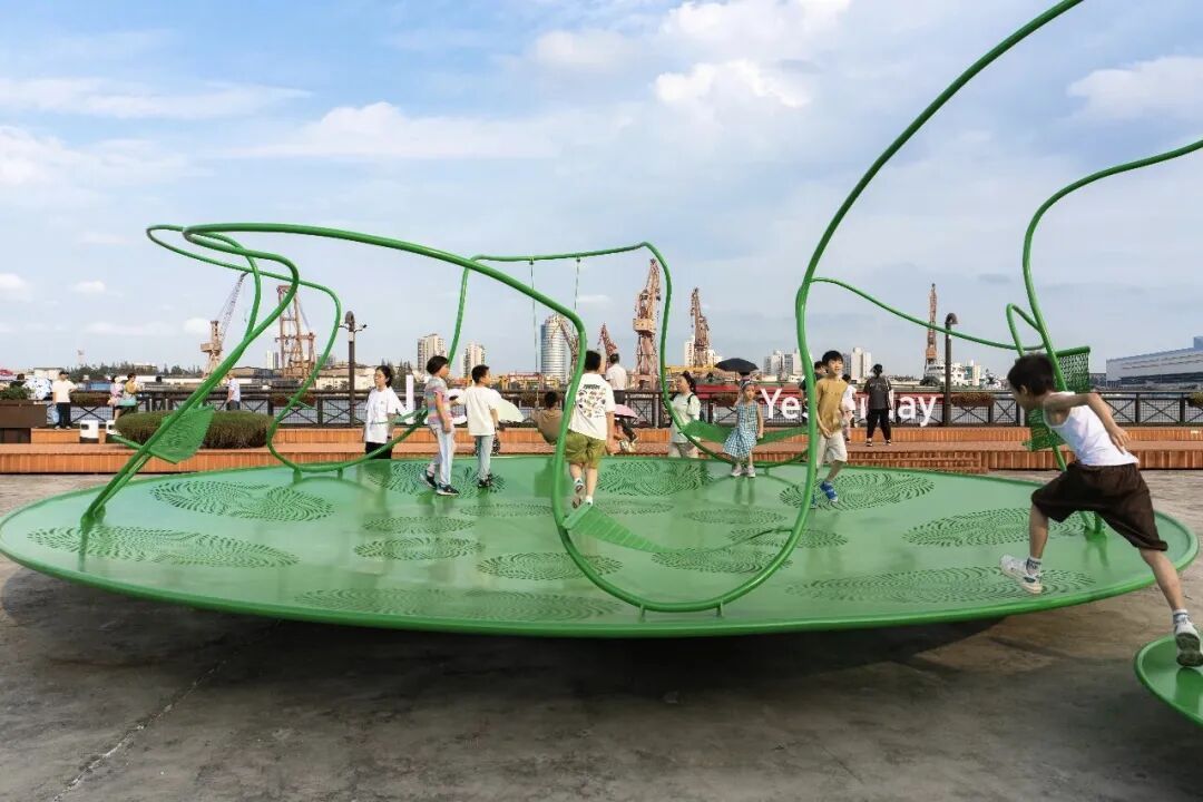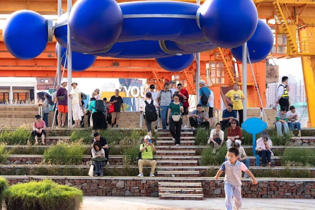 在复兴岛船台公园片区,全体人员在讲解员引导下,从A馆复兴云厅、室外复兴广场、复兴轴线、B馆复兴艺廊等认真观摩、沉浸体验,直观感受科技与艺术交相辉映、城市与未来双向奔赴的生动图景。参观过程中,大家全神贯注,在巨型吊塔、造船船台等工业遗存与自然生态景观和谐共生的美好环境中,不时与讲解员互动交流,相互分享见闻收获,深切体悟科技创新、空间艺术与城市更新的融合碰撞,深刻领悟人民城市理念。