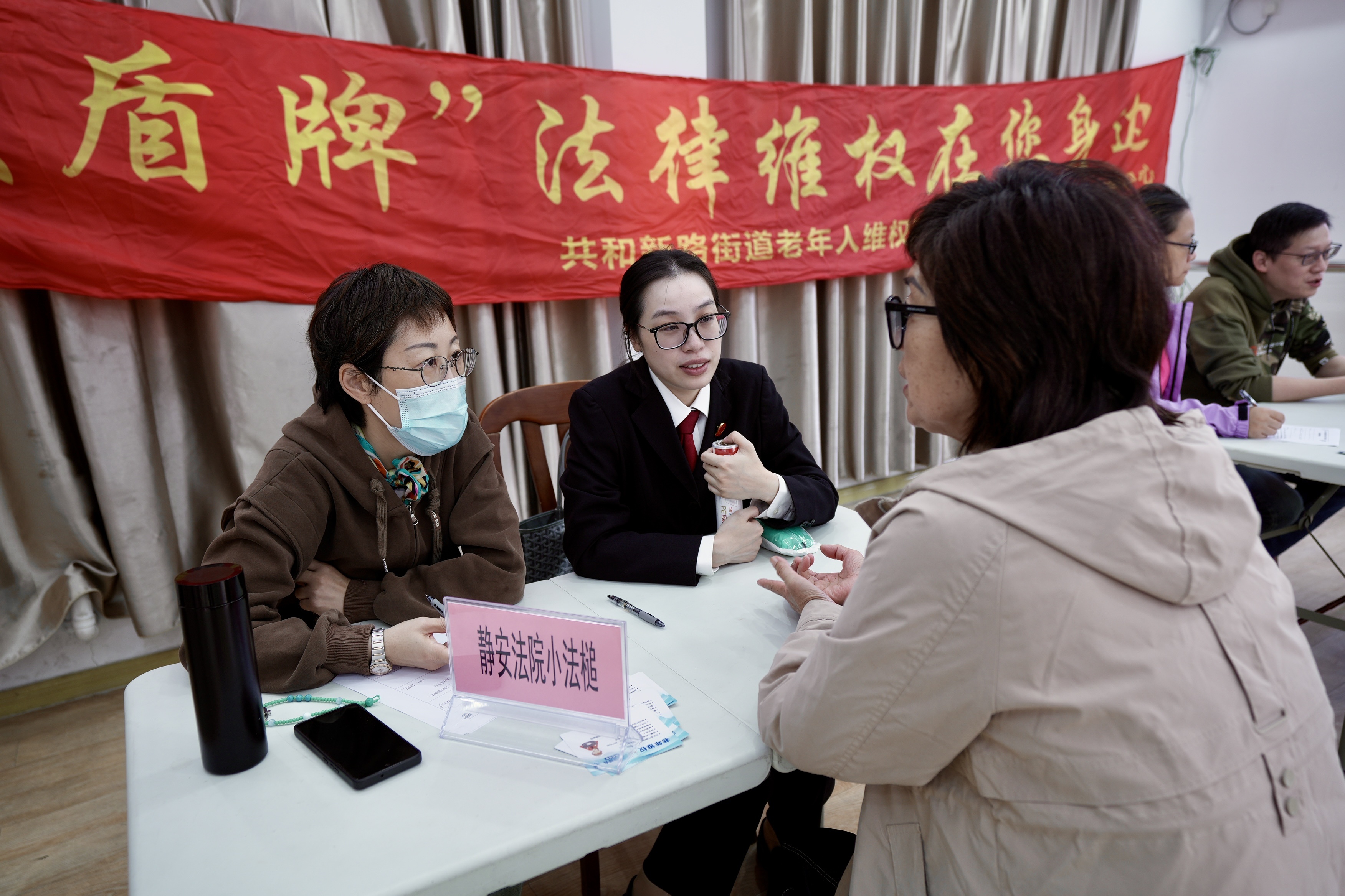 除主会场的热闹场景外,分会场同步开展共和新路街道老年人维权项目《银发盾牌》大型法律咨询活动,为社区老人的权益保障筑起“防护墙”。本次法律咨询活动邀请来自静安区消费者保护委员会、静安区人民法院小法槌志愿者服务队、海东承志律师事务所的三位专业人士坐镇,针对老年人关心的消费维权、财产继承、婚姻家庭、侵权纠纷等常见法律问题,耐心解答疑问、梳理法律关系,并结合实际案例给出专业建议,帮助老人增强法律意识,掌握维护自身合法权益的方法。