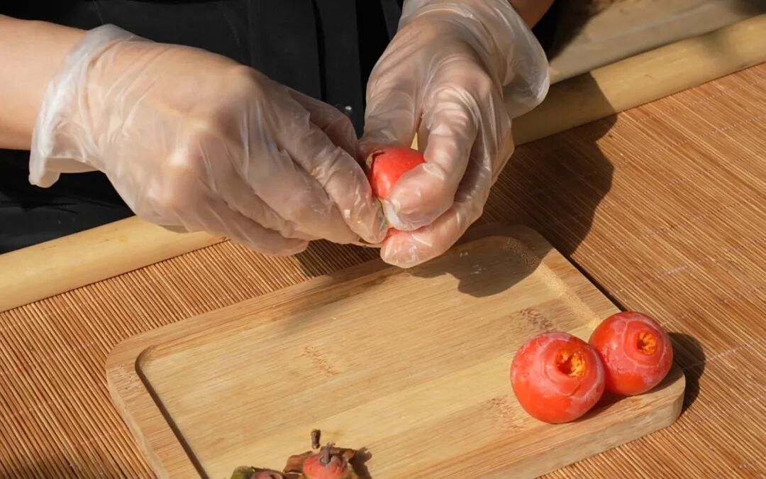 2.取下柿蒂,放置一旁备用;