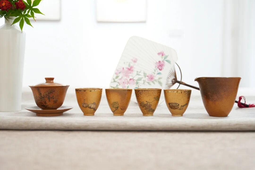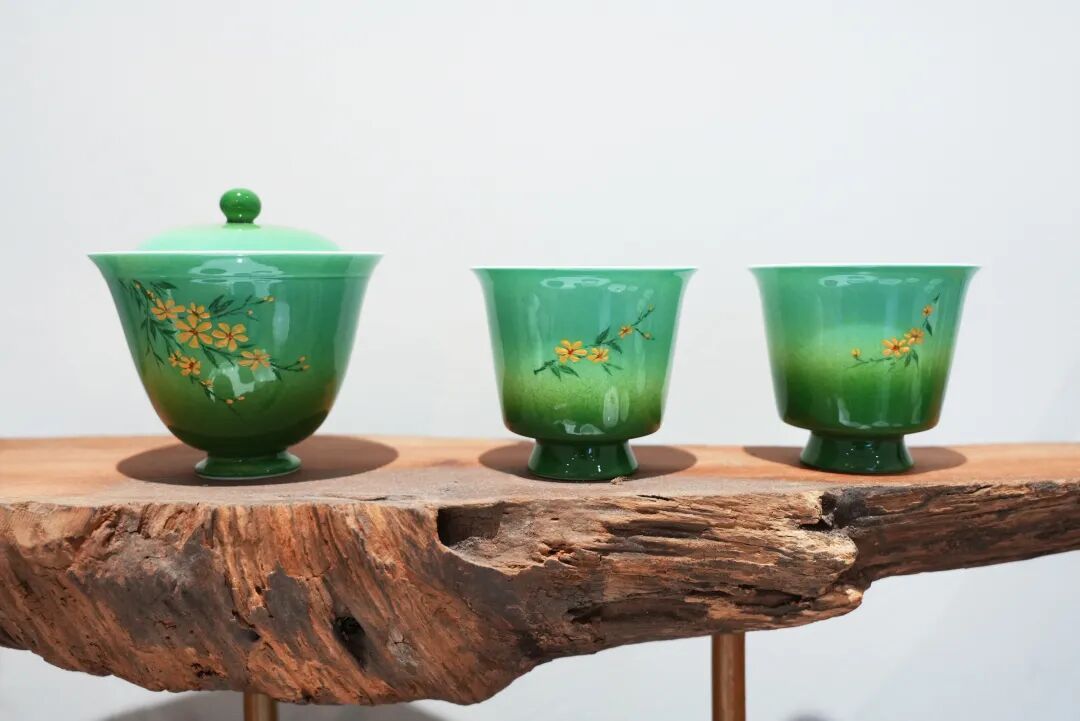 海派瓷艺早期的仿古茶具颜色偏深,器型较大,多为男性使用。图案多为山水、花鸟等仿宋样式。