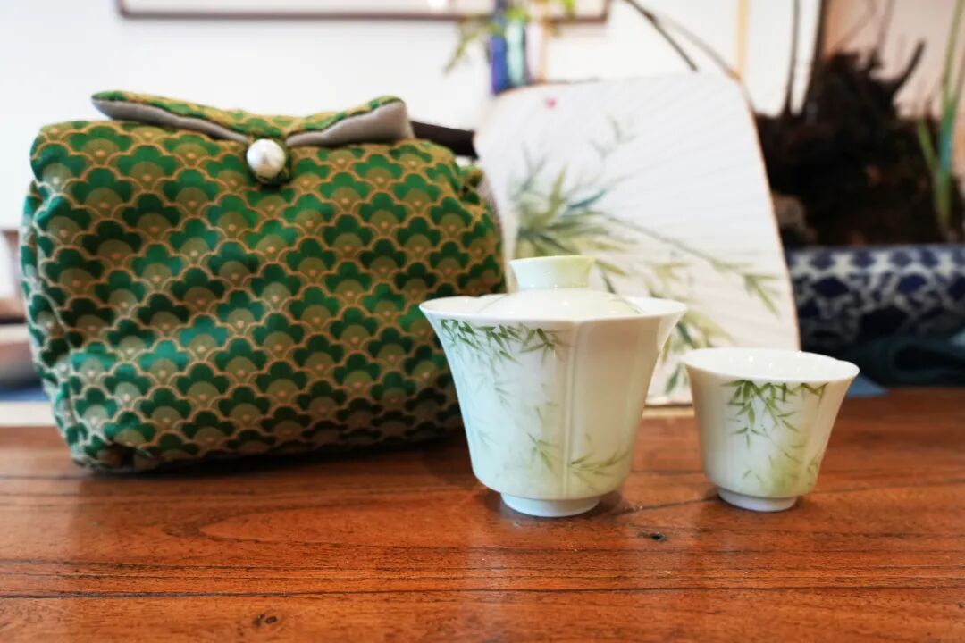 为便于饮茶爱好者外出携带,盖碗、茶壶旅行套装的设计应运而生——包内茶具分格放置,收纳包设计了松紧口固定茶具防止碰撞。