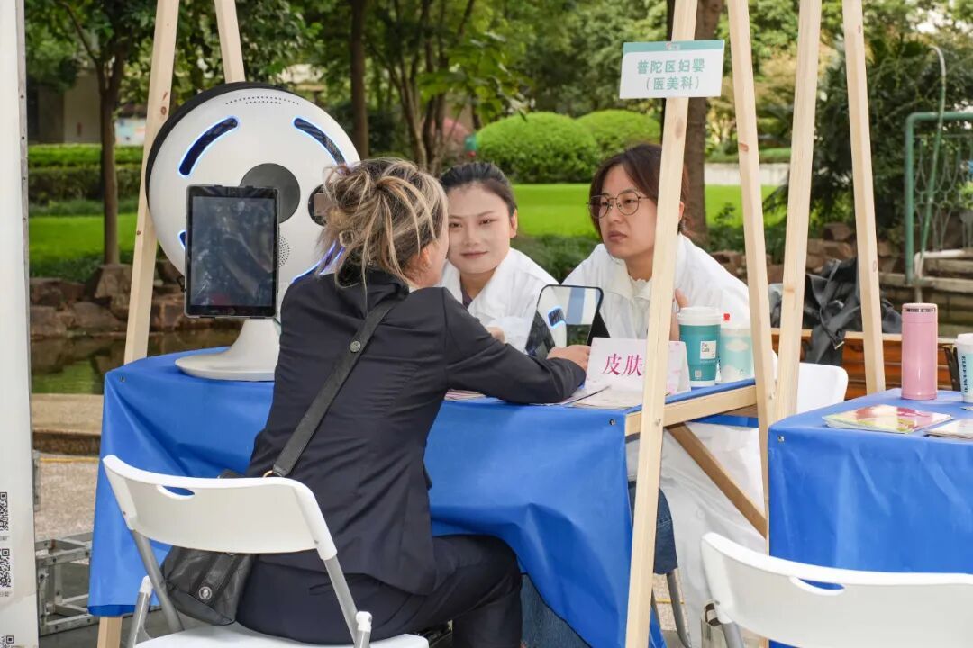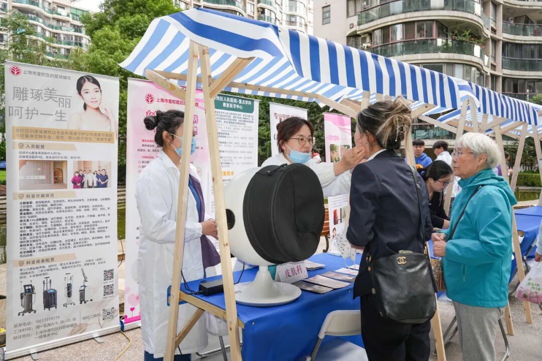 医美咨询区则聚焦居民的“美丽需求”,成为不少女性居民的“关注点”。医美专家围坐在一起,用通俗易懂的语言解答大家关于皮肤护理、美容养颜的疑问。“我生完孩子后,脸上长了好多色斑,用了不少护肤品都没效果,想知道有没有安全的改善办法?”一位居民的提问得到了专家的细致回应:“色斑成因有很多,需要先判断类型,日常要做好防晒,也可以了解下光子嫩肤,但一定要选择正规医疗机构。”专家们还详细讲解了水光针、热玛吉等常见医美项目的效果、安全性和术后护理要点,破除“医美=整容”的误区,让居民们对科学变美有了更清晰的认知。