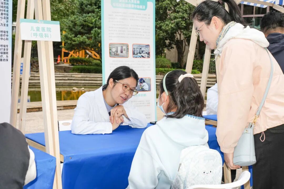 儿童成长区成了“亲子打卡地”,彩色气球与趣味展板吸引着家长们带着孩子驻足。儿科医生手持专业测量工具,为孩子们逐一进行生长发育评估,精准记录身高、体重、头围等指标,还结合孩子的饮食、运动习惯,为家长们答疑解惑。“孩子最近总挑食,换着花样做饭也不吃,正愁得睡不着觉!”一位年轻妈妈紧锁的眉头在听完医生建议后逐渐舒展,“专家教了我怎么搭配辅食、如何引导孩子尝试新食物,全是能落地的好办法,真是帮我解决了大难题!”此外,现场设置的健康知识小问答互动环节更让气氛升温,孩子们举着小手抢答“多吃蔬菜有什么好处”“每天要喝多少水”,答对后的小贴纸让他们笑容灿烂,欢声笑语洒满整个广场。