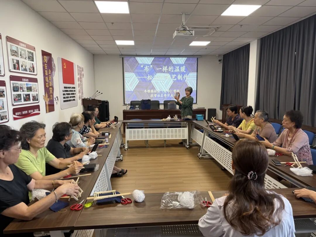 截至目前,社区已经开设了越剧、布艺等课程,不仅传授技能,也为居民搭建了社交平台,实现“老有所学、老有所乐”。以今年秋季开设的“松江布布艺课”为例,老年居民通过楼道群便可报名,在家门口就能学习本地非物质文化遗产的相关手工艺。在老师的指导下,大家学习制作手机支架、小香包、托特包等布艺作品。“每周四上课成了我最期待的事。”严阿姨高兴地说,“不仅学会了手艺,还结识了不少志同道合的姐妹,退休生活很充实。”