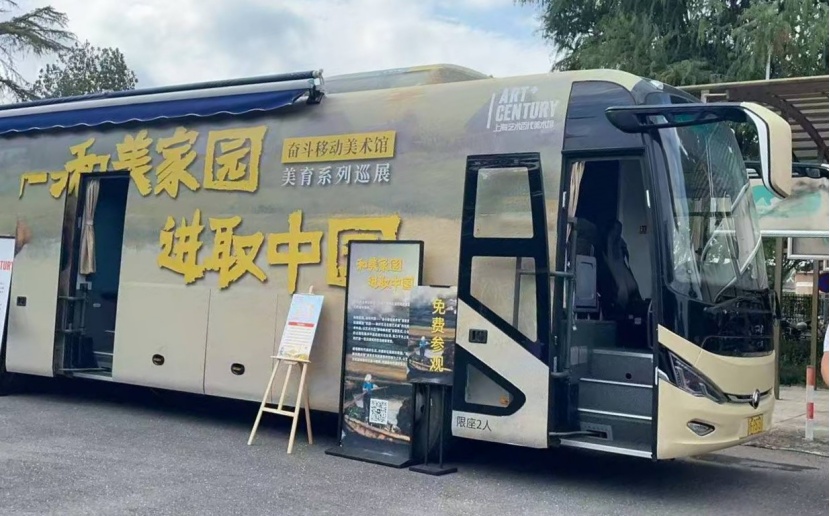10月25日下午,佘山国家森林公园东佘山园南大门至368登山道入口处开展中医义诊,由专家提供青少年脊椎与亚健康问题的咨询服务。同期,“奋斗移动美术馆”大巴停靠于东佘山园南大门右侧,车内设有艺术展览与生态科普影像,为游客打造移动式的美育与科普课堂。