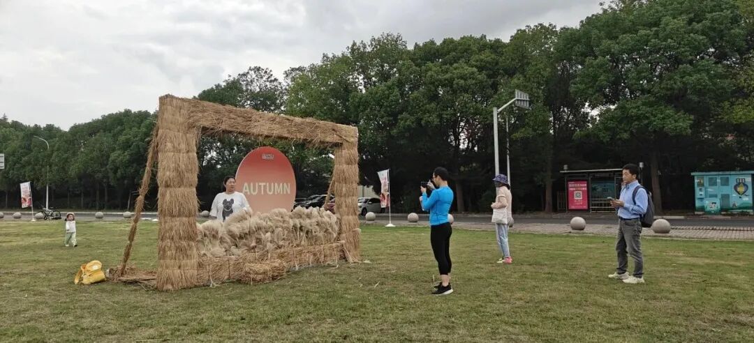 前段时间,多项主题活动依次展开,现场气氛热烈。“声入森心”声音邮局设于东佘山园、西佘山园及天马山园,游客穿行林间时可扫码聆听自然音景,还可书写明信片,将山间秋意寄予亲友。大地艺术稻田创作同样引人驻足,三组稻草装置点缀田间,其中最高者达三米,草垛迷宫与秋日相框成为亲子互动与摄影打卡的热门点位。