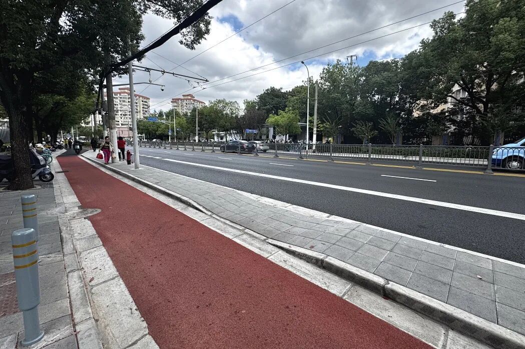 如今,通过全要素提升,站台采用30cm×30cm×6cm的仿石材步道石铺装,颜色与人行道协调一致,大大提升了平整度和舒适性。设计理念上,项目强调“以人为本、需求导向”,将慢行交通视为休闲游憩和城市活力的载体。