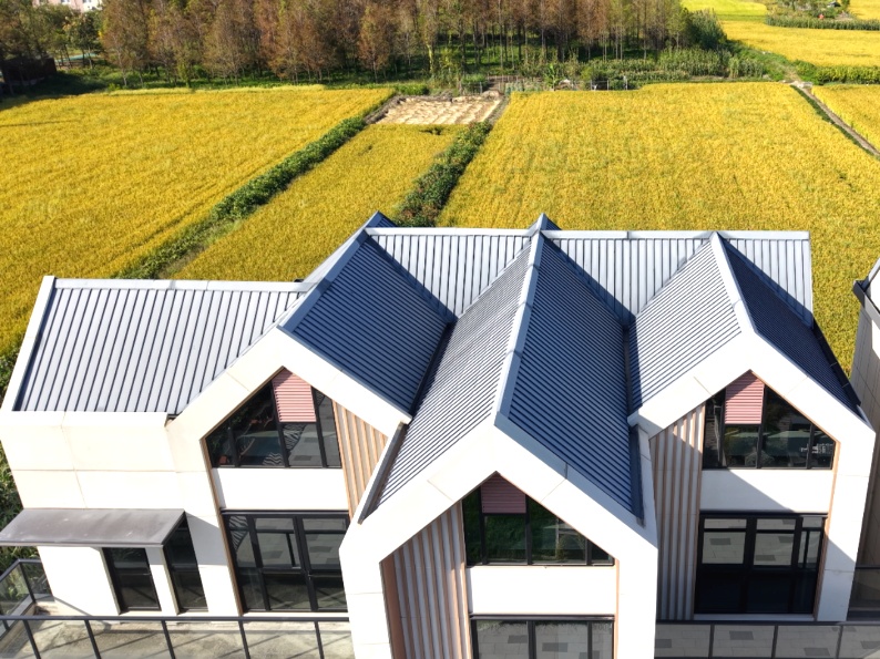 苏轼笔下秋日的饱满色彩,恰似五四村产业多元发展的画卷。金色稻田似大地织就的华丽锦缎;绿色公园如自然馈赠的鲜亮宝石;白色瓦檐与自然相融,仿若岁月沉淀的温柔底色。三者交相辉映,织就一幅现代乡村的丰收画卷,既有传统农耕的质朴厚重,又蕴含现代生态的灵动鲜活,于斑斓色彩间展现乡村新貌。