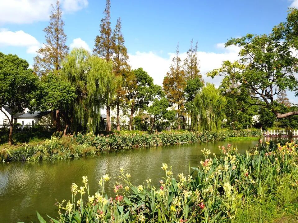 唐代高骈笔下“绿树阴浓夏日长,楼台倒影入池塘”的静谧夏日,与五四村秋日的生机活力形成鲜明对比。在这里,绿荫掩映的青春活力街区,老人对弈、青年漫步,尽显生活气息;河流倒影中,传统浮桥与现代路灯轮廓相映,传统与现代交织,勾勒出一幅静谧与活力并存的秋日画卷。