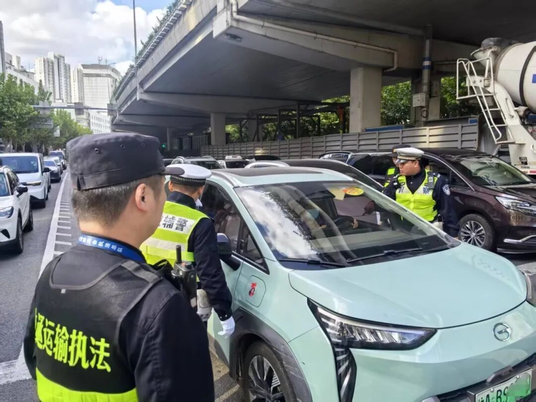 现场,执法人员正在对过往的网约车开展执法检查↑↑↑