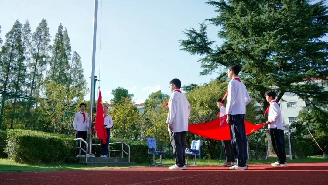 在雄壮的国歌声中,五星红旗冉冉升起,全体师生肃立凝视。体育竞技的热情与爱国情怀在这一刻融为一体,为运动会奠定了庄严而激昂的基调。