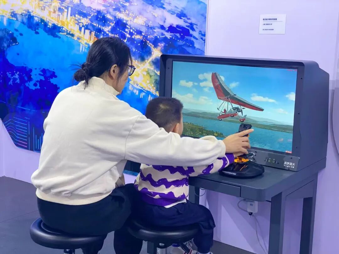 “原本觉得科技企业离我们很遥远,但现场体验后才发现,这些产品可以直接服务我们的生活。”观展居民张彩洪现场体验智能毛发分级鉴定仪、舌面脉信息采集系统等设备后兴奋表示。记者在现场看到,素湃气凝胶抗寒服展区前,观展者正在体验对比裸手与佩戴手套的御寒效果;上海工程技术大学的飞机模拟驾驶器前,孩子们在工作人员的指导下推动操纵杆,体验“飞行”乐趣;太阳能实时数字站牌则通过可视化数据,展示北斗定位与绿色供电技术如何优化公交出行。