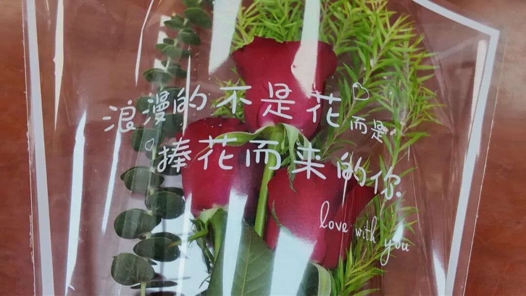 虽是免费赠送,但准备工作却毫不含糊。虹口城发公园公司工作人员对于植物颜色搭配,包装标语挑选都是精心设计,尤其是包装上的标语“浪漫的不是花,而是捧花而来的你 ”正是代表了他们的心声。