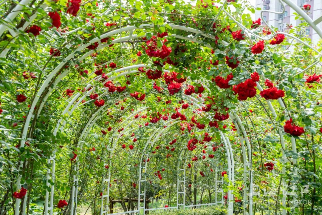 据了解,这些美丽花束的来源地——曲阳公园月季园,本是每年四月下旬和十月初的“网红”打卡点,盛花期时花廊如瀑,吸引众多市民拍照,甚至还有新人来此拍摄婚纱照。今年,因公园进行局部提升改造,为确保游客安全,月季园区域实行了封闭管理。