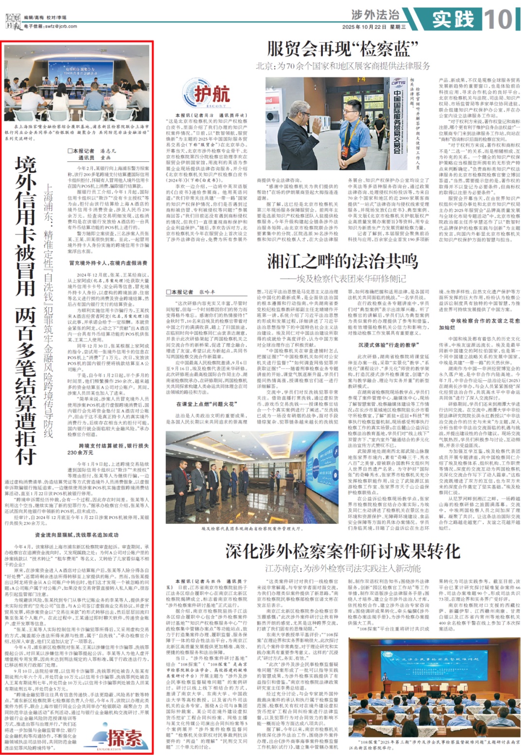 “跨境金融犯罪往往具有信息传递快、手法更隐蔽、风险易扩散等特点。”浦东新区检察院第七检察部负责人介绍,今年6月,该院以办理此类案件为抓手,联合上海市银行同业公会共同举办“检银联动 凝聚合力 共同防范非法金融活动”系列活动,通过与银行业金融机构交流研讨、开展涉银行业金融风险防范授课培训等方式,推进治罪与治理并行,“我们还将进一步加强与金融监管单位、银行业金融机构等沟通协作,不断强化金融领域执法司法协同,共同防范金融违法犯罪风险跨境传导”。