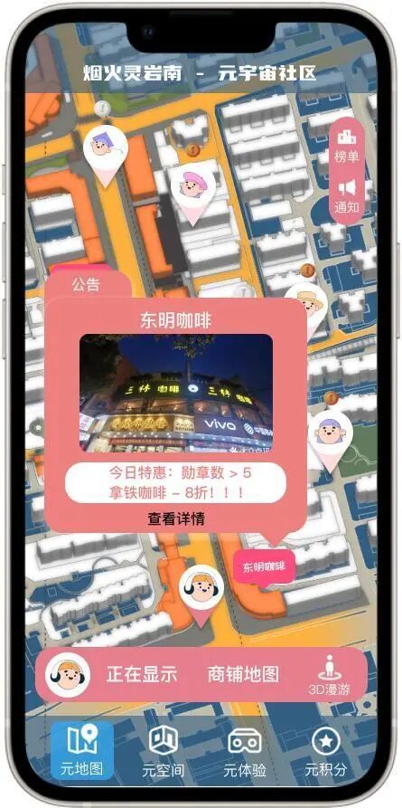 在元宇宙社区中,用户可以查看商户信息和优惠活动,了解街道公共活动安排。以虚拟形象在数字孪生社区中穿行了解周边信息,或是打开摄像头通过AR技术和实景街区中的各个场景互动,元宇宙的使用吸引了众多青年的注意力,让他们从最初的不感兴趣到有所关注,再进一步成为志愿者甚至社区达人。