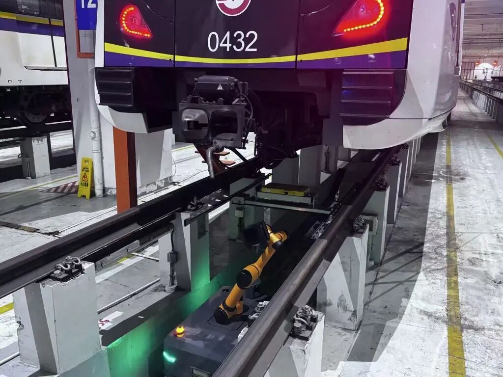 在上海地铁4号线车库里,一台机器人正滑动到一列地铁的下方开启智能巡检,挥动机械臂让摄像头寻找安全隐患。一旦发现漏油、螺丝松动等问题,它能够主动识别并进行自动报错。相较于人工巡检,智能巡检机器人效率更高并且有更为统一的标准。