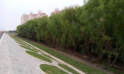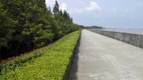 在海塘保护范围内,普遍分布着诸如麦冬、马尼拉等草本植物,冬青、黄杨、红叶石楠、海桐等灌木也随处可见,此外龙柏、桧柏、池杉、柳杉、柳树等乔木亦在此地扎根生长。在这些适宜地段栽种树木,不仅为海塘增设一道生态保护屏障,而且树木的根系紧握土壤防止水土流失,从而进一步增强了海塘的防灾减灾能力及稳定性,这无疑是对海塘工程防护措施的重要增益。