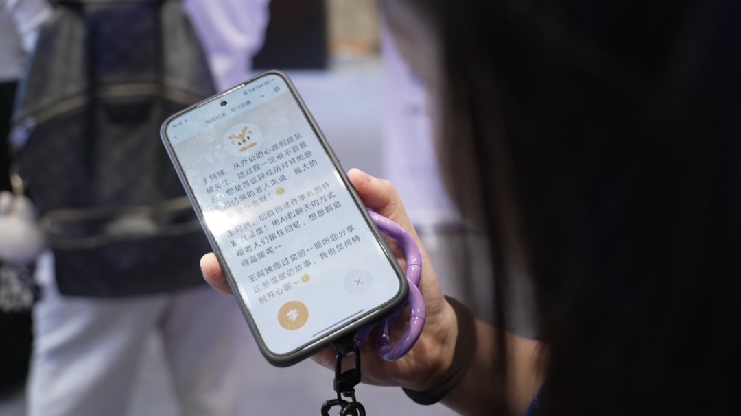 在另一处展位,“小鹿光年”AI回忆录项目吸引了许多喜爱记录生活的“银发创作者”。退休的张女士在展区停留了近一个小时,她说:“它能帮我整理故事、教我写作方法,我退休了也想写点东西,这对我很有帮助。”