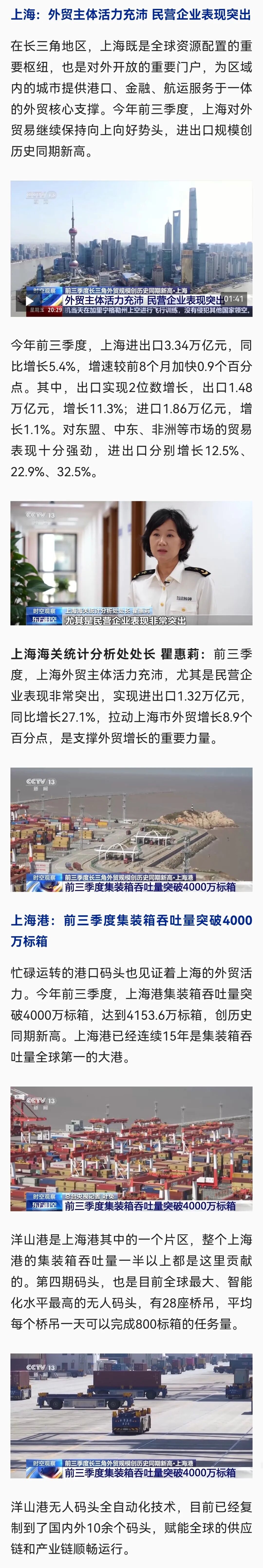 ●03 今年前三季度上海出口实现两位数增长(央视《东方时空》《朝闻天下》、央视财经、新华财经、解放日报、中新社、文汇报、浦东时报、上观新闻)