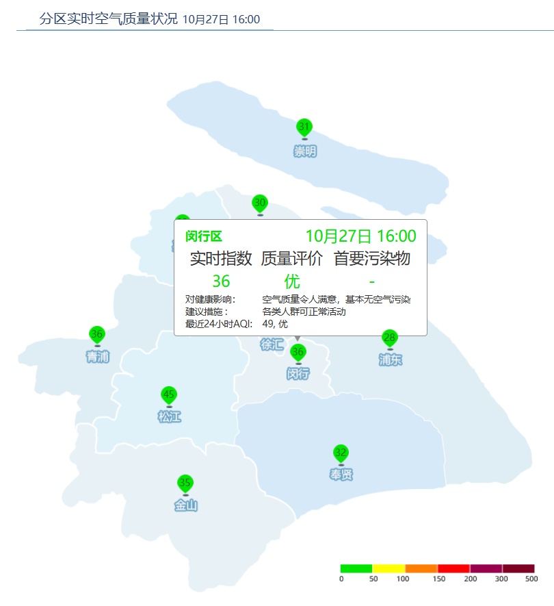 闵行区AQI为36,优。